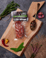 Технология сушки сохраняет в готовом продукте все полезные вещества, которые содержатся в свежем мясе: белок, жиры, витамины (в первую очередь А, В и РР), микроэлементы (магний, железо, фосфор, кальций, цинк), аминокислоты. Снэки упакованы в вакуумный пакет, что обеспечивает длительную сохранность продукта в первоначальном виде.