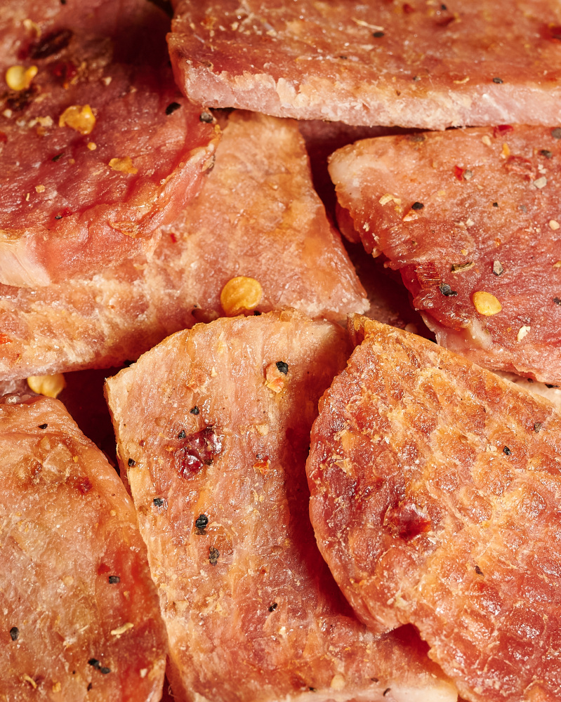 Свиные джерки - здоровое питание, вкусная закуска, перекус. Соленое вяленое свиное мясо можно взять в поход, на пикник, прогулку, праздник, в дорогу, путешествие, на охоту, рыбалку, в спортзал на тренировку. Качественный полезный мясной снек 100% натуральный мясной продукт. Мясные джерки полезны, рекомендуются атлетам, спортсменам, при фитнес тренировках.