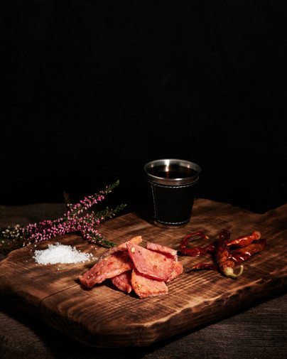 Джерки мясные «Свиной огонек» - сыровяленые ломтики сделаны из качественного мяса категории А. В джерках используются только натуральные пряные специи которые придают мясным ломтикам особенный, огненный вкус.